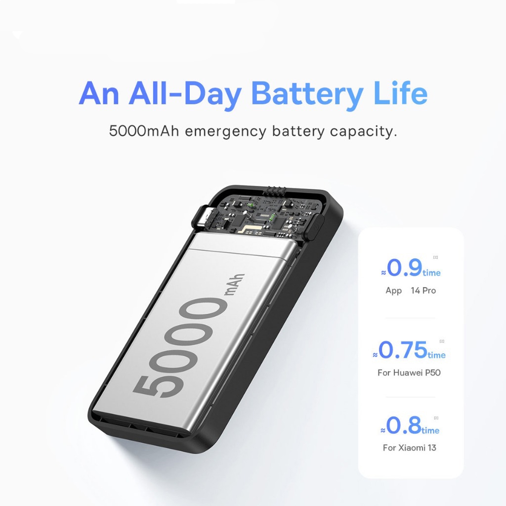 Dung lượng 5000mAh – đủ sạc 1 lần đầy pin cho iPhone. Thiết kế siêu mỏng chỉ 0.8cm, nhẹ chưa đến 150g, dễ dàng bỏ túi áo/quần, lý tưởng cho công việc, du lịch hay đi học.
